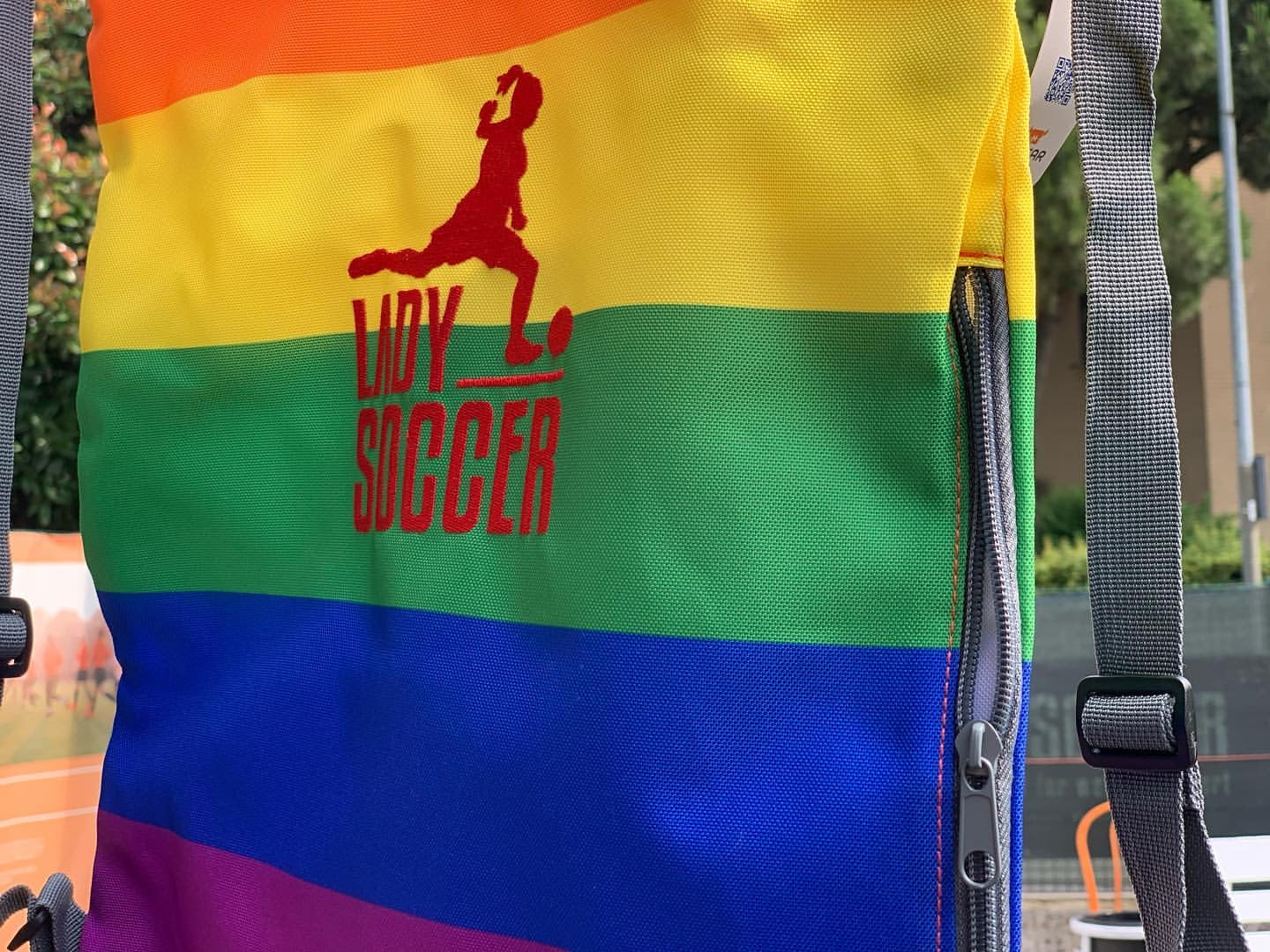 Zainetto rainbow con tasca esterna a cerniera, chiusura superiore a cerniera e clip